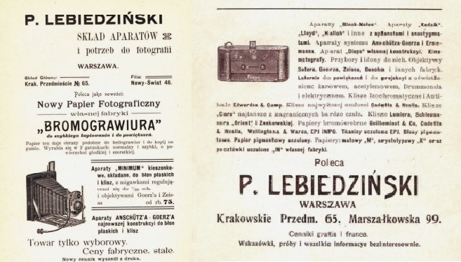 W 1888 roku w Warszawie P. Lebiedziński rozpoczął pierwszą w Polsce produkcję specjalnego papieru fotograficznego. Co więcej, zajmował się produkcją materiałów światłoczułych, części zamiennych i aparatury fotograficznej. Firma P. Lebiedzińskiego szybko stała się znana w całej Europie i zyskała ogromną popularność oraz doskonałą reputację, ponieważ wytwarzała wysokiej jakości produkt, który następnie aktywnie eksportowano do Berlina, Paryża, Londynu i Wiednia.