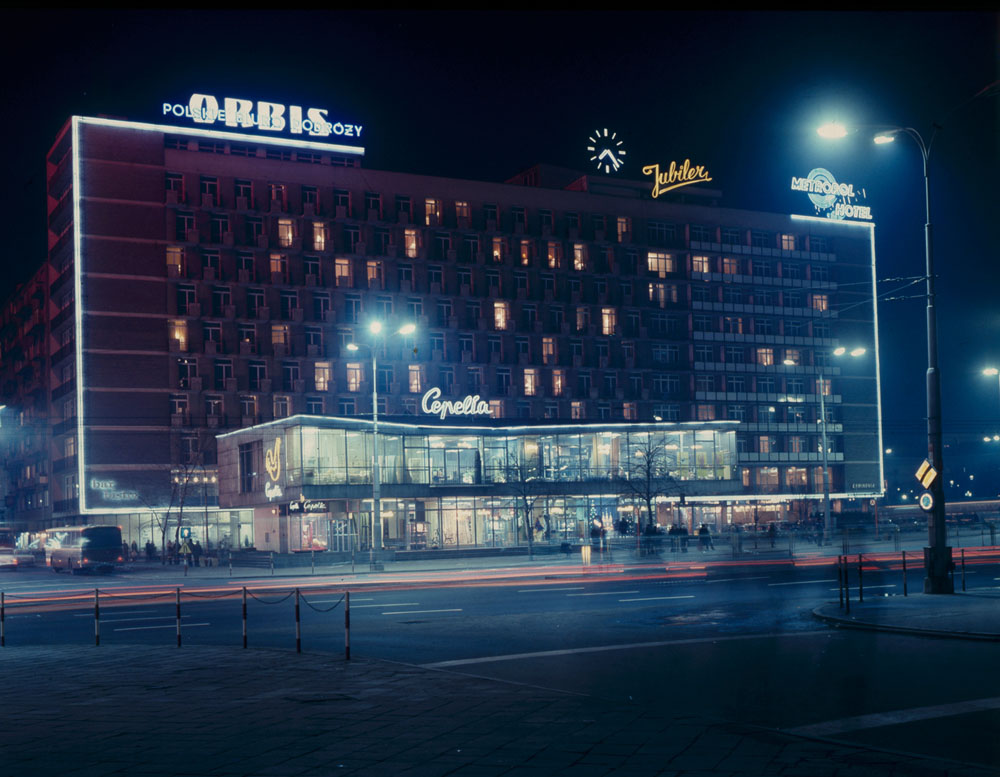 Использование неона в качестве рекламы в течение 40-50-х годов никак не поощрялось, ведь всевозможные маркетинговые приемы не вписывались в коммунистическое устройство. Неоновые вывески разрешалось использовать только в качестве декора и для передачи информации, поэтому неон освещал некоторые варшавские вокзалы, кинотеатры и отели.
