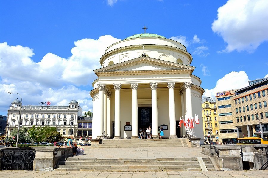 Римо-католицький храм розташований на площі Трьох Хрестів у Варшаві. Збудували костел у 1818-1826 роках. Автором будівлі був архітектор Христіан Айгнер.